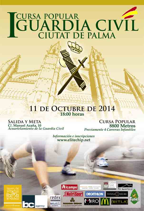 Art. 1. Organización. – La Zona de la Guardia Civil de les Illes Balears organiza la “I CURSA POPULAR GUARDIA CIVIL CIUTAT DE PALMA”, cuya celebración tendrá lugar el próximo día 11 de octubre de 2014 en el horario que se indica: